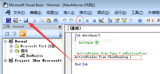 b) 如下一样插入一句 ActiveWindow.View.ShowHeading 1,表示活动窗口的视图Heading(层级)为1,也即是一级目录/标题