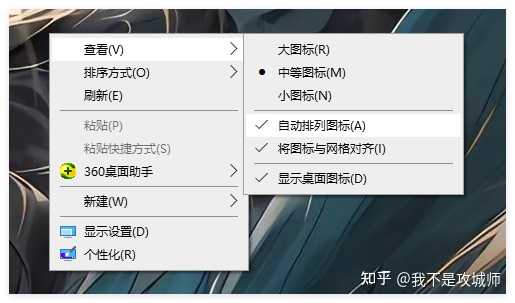 - 如果被勾选,取消勾选此选项。这样,桌面图标就不会自动排列,你可以自由移动它们。
